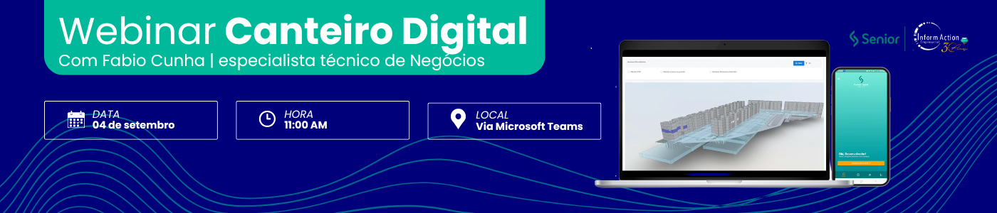 Nesse Webinar vamos mostrar como o Canteiro Digital conecta em tempo real o planejamento e a execução, oferecendo visibilidade completa da obra e mais controle para a sua gestão.